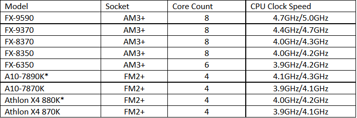 - Athlon X4 880K – 4.0GHz/4.2GHz