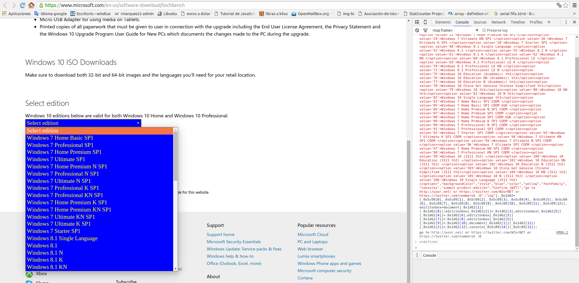 A pesar de que Microsoft promociona con bombos y platillos la reciente versión de Windows 10, hay usuarios que no tienen planes de migrar a dicha versión del sistema operativo, pero a su vez muchos de estos usuarios poseen instalaciones de Windows 7 instaladas desde ISO’s poco confiables, pues bien hay un método para hacer que la página de Microsoft nos muestre la descarga de Windows 7/8.1 en sus diferentes ediciones, estos pasos son: