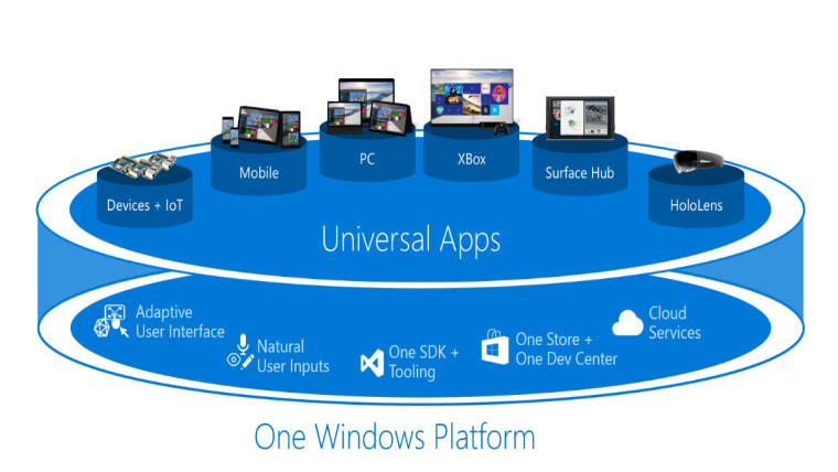 Queremos que Windows 10 sea la mejor plataforma para desarrollar usando tecnologías independientes, es por ello que ofrecemos herramientas para ayudar a los desarrolladores con código base existente en HTML/JavaScript, .NET, C++, Objetive-C y Win32 los cuales se integran con las capacidades de la plataforma universal de Windows. Con Xamarin, los desarrolladores no solo llegarán a todos los dispositivos con Windows 10 mediante la plataforma universal de Windows, sino que también dispondrán  de un gran porcentaje de su código base C# para ofrecer aplicaciones totalmente nativas a otras plataformas como Android o iOS.»