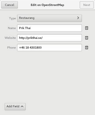 La próxima gran actualización de GNOME Maps 3.20 incluirá una nueva funcionalidad la cuál permitirá a los usuarios editar datos de OpenStreetMap como restaurantes, parques, sitios turísticos, hoteles, etc.