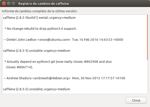 Por otra parte también entre las numerosas mejoras y arreglos de errores se incluye una nueva versión del inhibidor de pantalla Caffeine la cuál se caracteriza por estar re-escrita en Python 3.5 que es la versión por defecto que tiene Ubuntu 16.04 hasta los momentos, ya que anteriormente este paquete se ofrecía con Python 3.4