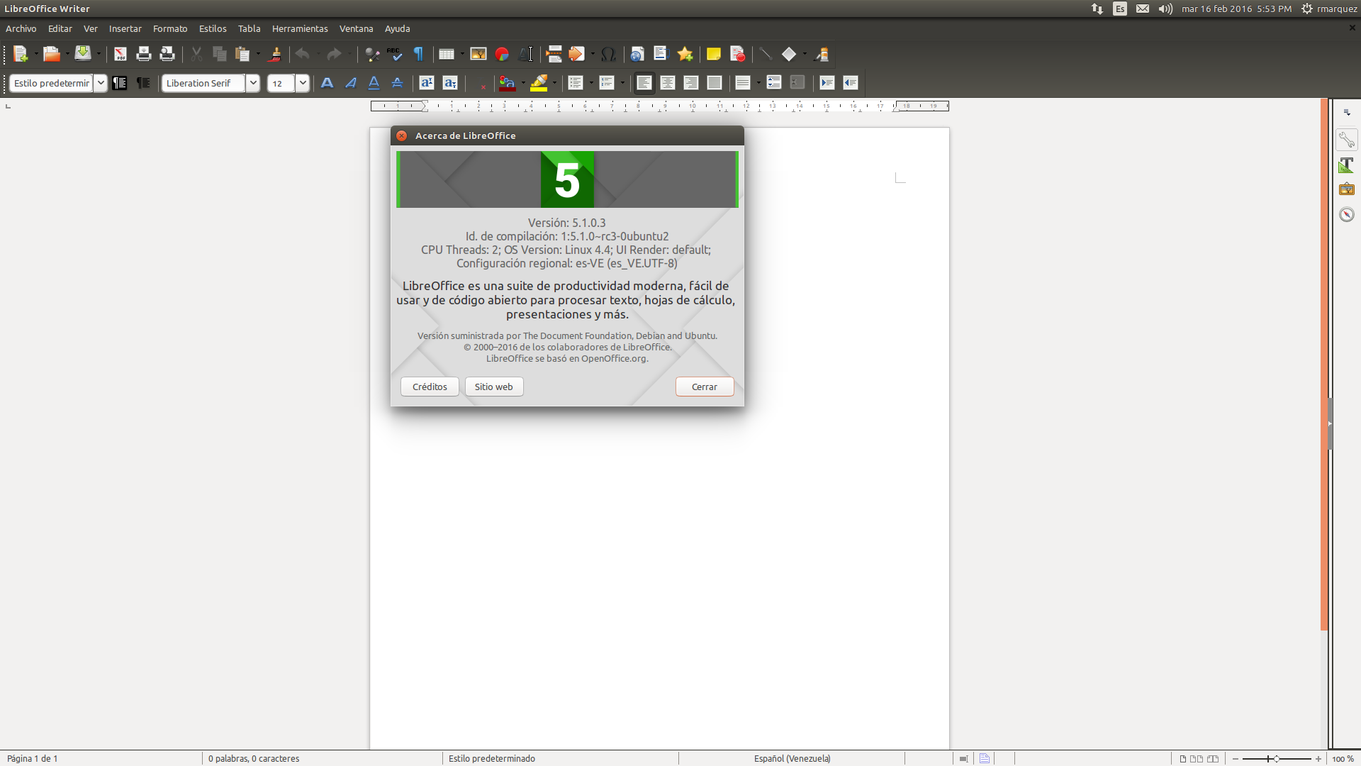 Hace pocos momentos ha llegado a Ubuntu 16.04 Xenial Xerus, la versión 5.1 de Libreoffice, pero no la convencional sino la versión en GTK3!!!
